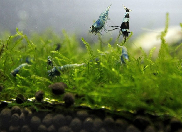 Pequenos camarões são exibidos durante entrevista que precede a abertura da Exposição Internacional de Aquarismo em Taiwan, na Ásia (Foto: Pichi Chuang/Reuters)