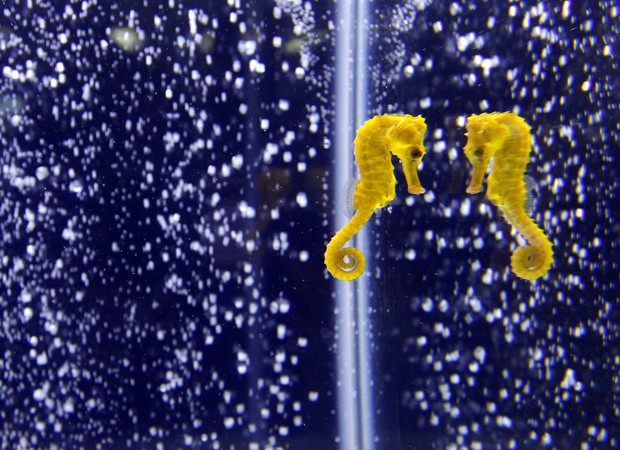 Cavalo-marinho que vai integrar a Exposição Internacional de Aquarismo em Taiwan, na Ásia, é avistado nesta segunda-feira (5). Estes animais são vendidos a cerca de US$ 100, segundo o dono do aquário informou às agências internacionais (Foto: Pichi Chuang/Reuters)
