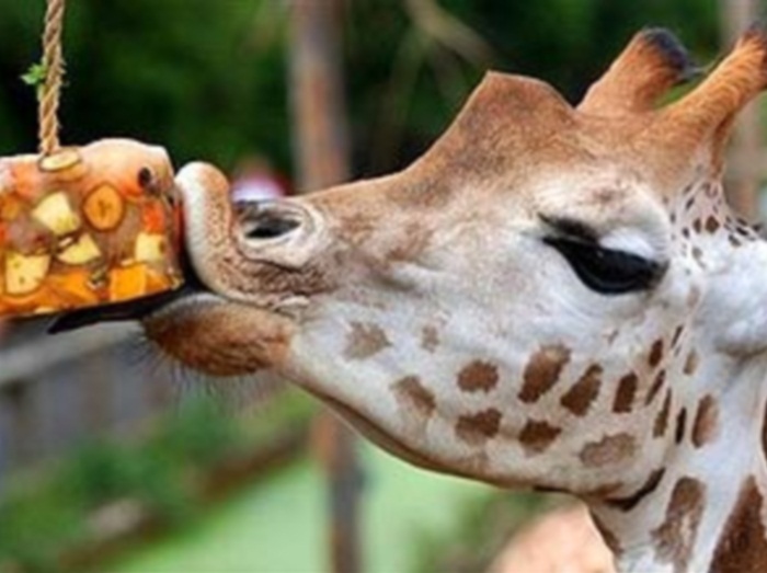 Essa girafa está se deliciando com um sorvete de frutas. Você sabia que, no calor, os bichos ganham sobremesas geladas? Por conta do tempo abafado, os zoológicos investem em cardápios mais leves e refrescantes...