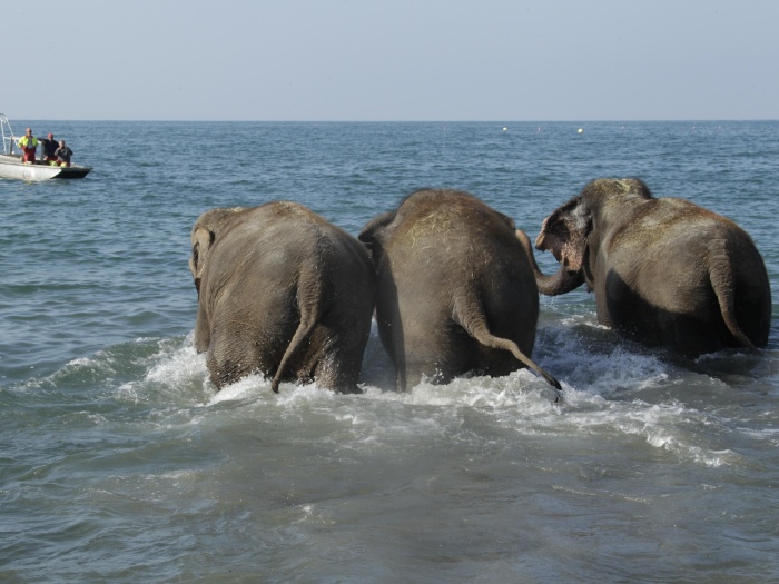 Esse grupo de elefantes ficou famoso por tomar banho no lago Geneva. Vai dizer que esse trio não chamaria a sua atenção durante um mergulho em um dia ensolarado?